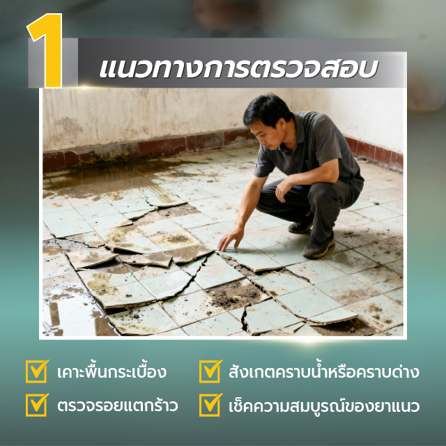 - เคาะพื้นกระเบื้อง เพื่อเช็คการหลุดร่อนของกระเบื้อง