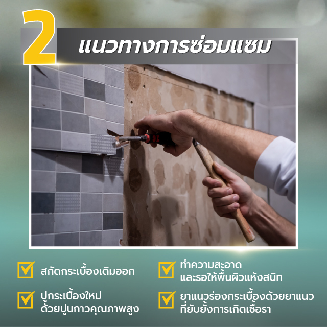 - เช็คความสมบูรณ์ของยาแนว มีส่วนที่หลุดล่อนหรือไม่