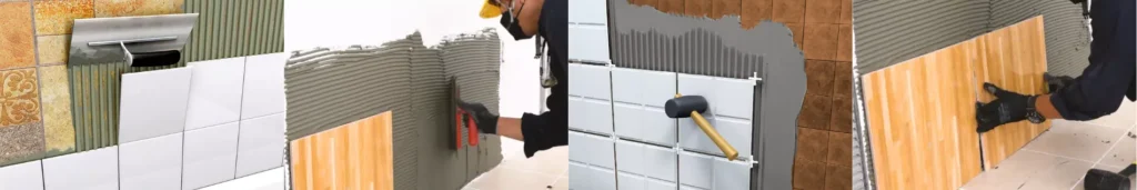- การปูกระเบื้องใหม่ควรเริ่มจากผนังก่อน เว้นระยะห่างที่กระเบื้อง ประมาณ 2- 3 มม. เพื่อให้ได้ร่องยาแนวที่พอดี กระเบื้องไม่ระเบิด