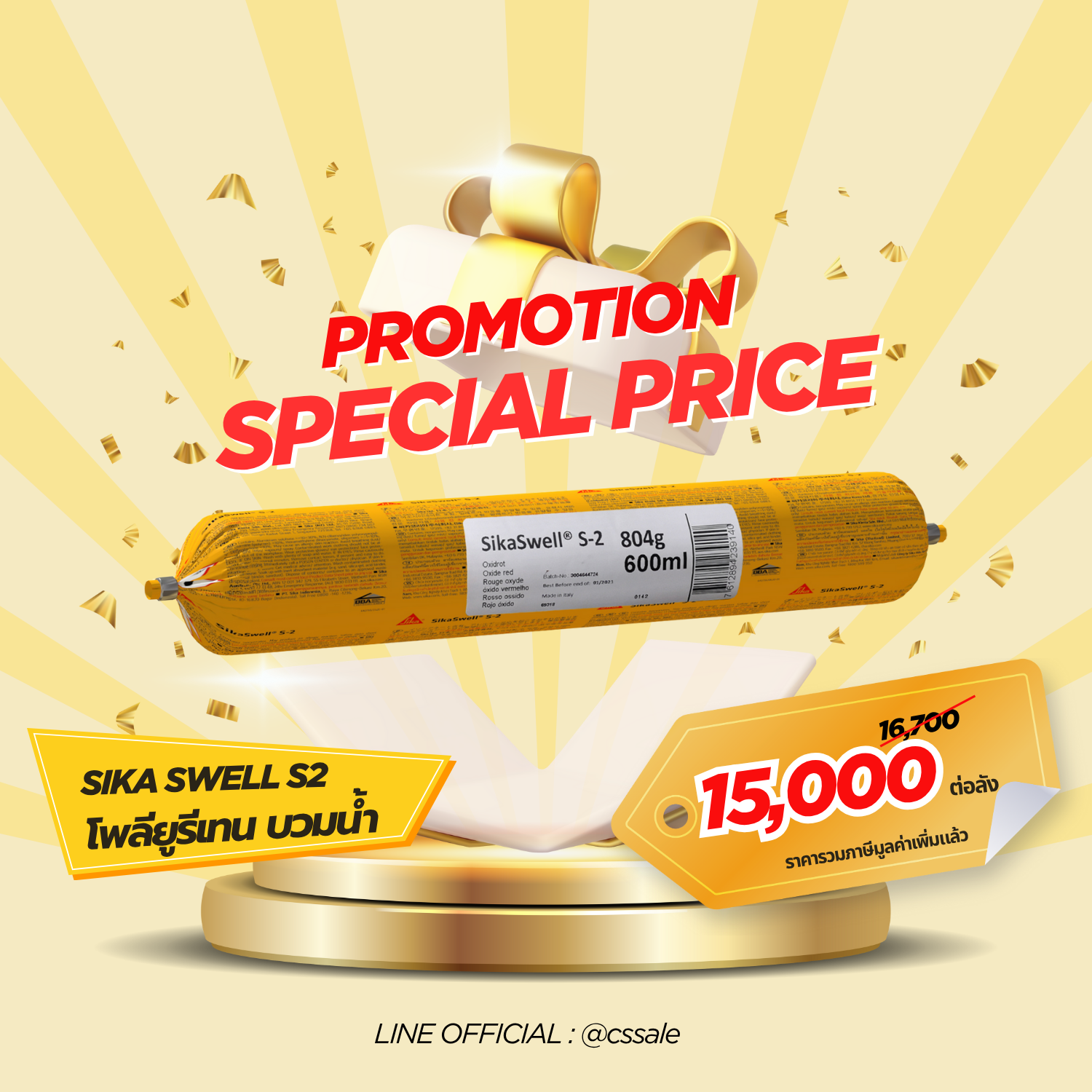 โปร 11.11 เดือนพฤศจิกายน ลดหนัก จัดเต็ม! Posted on November 10, 2025November 10, 2025 by Charoensittiphan Sale Special price Special deal! ” โปรแรงประจำเดือน พฤศจิกายน “ โพลียูรีเทนบวมน้ำ SIKA Swell S-2 ราคาพิเศษ! 15,000 / ลัง (20หลอด/ลัง) ราคารวมภาษีแล้ว วัสดุยาแนวรอยต่อโครงสร้าง เพื่อกันซึม ขยายตัวได้ดีเมื่อสัมผัสน้ำ ใช้งานง่าย สะดวก รวดเร็ว