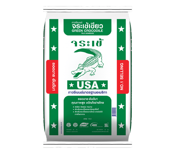 กาวซีเมนต์ จระเข้เขียว เป็นปูนกาวที่เหมาะสำหรับงานปูกระเบื้องแกรนิตโต้ขนาดใหญ่ และกระเบื้องทั่วไป สามารถใช้ปูกระเบื้องพื้นและผนังภายใน-ภายนอกอาคาร โดยไม่ต้องแช่กระเบื้องในน้ำก่อนปู