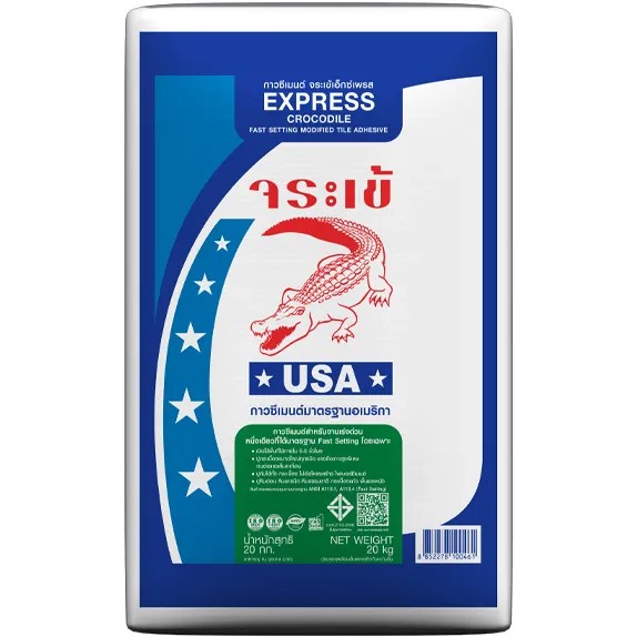 กาวซีเมนต์ จระเข้เอ็กซ์เพรส 20 กิโลกรัม (1 ถุง) ต่อ น้ำ 4.8 ลิตร หรือ