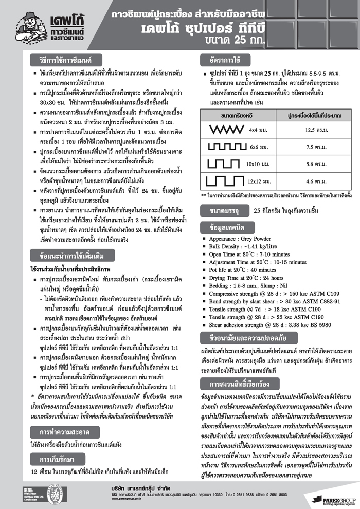Davco (เดพโก้) ซุปเปอร์ ทีทีบี กาวซีเมนต์ปูกระเบื้อง