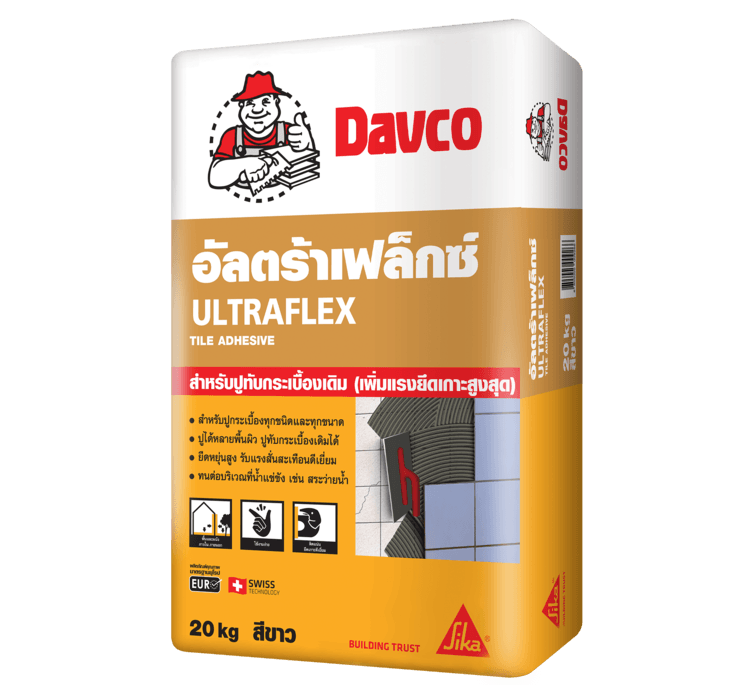 เดพโก้ อัลตร้าเฟล็กซ์ เป็นกาวซีเมนต์คุณภาพพรีเมี่ยมใช้ได้กับกระเบื้องทุกชนิดด้วยสูตรพิเศษ สามารถปูได้พื้นที่มากขึ้น 25% ทำงานง่ายไม่ลื่นไหลขณะปู มีแรงยึดเกาะสูงบนพื้นผิวหลากชนิด ทนการแช่น้ำ สามารถปรับแต่งกระเบื้องให้สวยงาม มีอัตราการหดตัวต่ำ สามารถใช้ปรับระดับได้ถึง 10 มม. ก่อนปูกระเบื้องบนพื้น ผนัง คอนกรีต ปูนฉาบ และคอนกรีตมวลเบา ปูได้ทั้งแบบหนาและบาง มีสีขาวและสีเทา