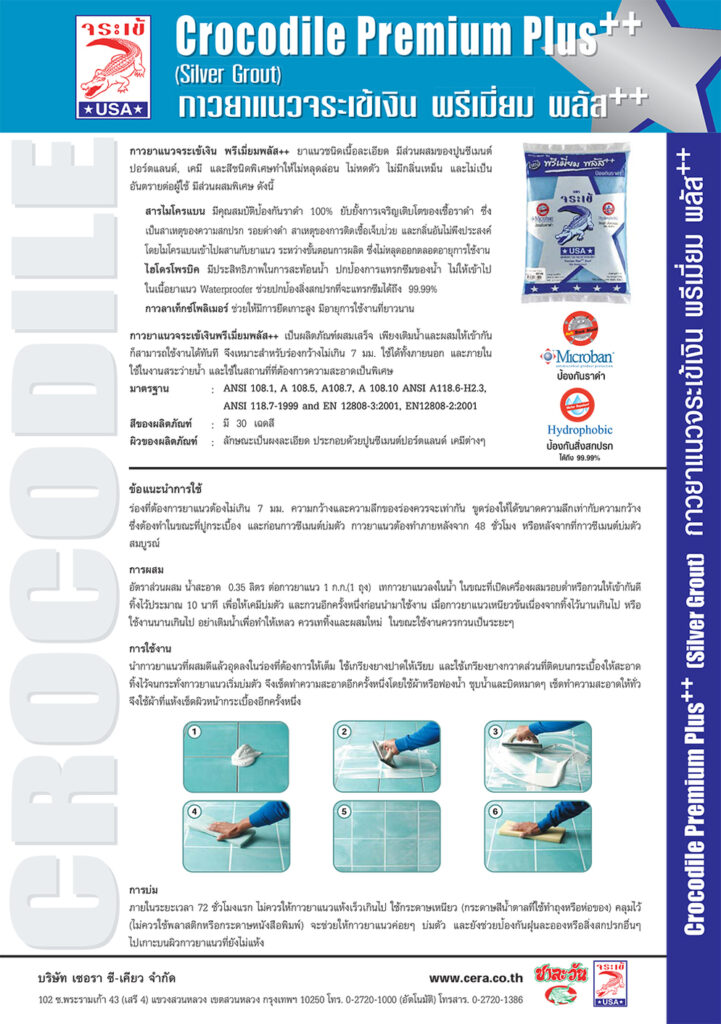 - เหมาะกับกระเบื้องเซรามิก กระเบื้องแกนิตโต้ กระเบื้องหินอ่อน กระเบื้องโมเสก