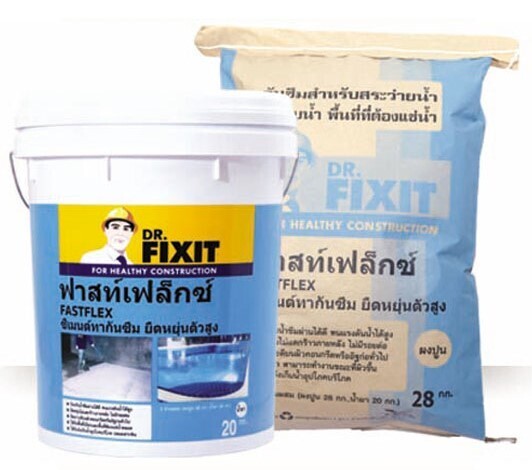 ดร.ฟิคสิท ฟาสท์เฟล็กซ์ เป็นวัสดุทากันซึมชนิดซีเมนต์ 2 ส่วนผสม คือ ส่วนผง (ซีเมนต์ทรายละเอียดคัดขนาด) ส่วนน้ำยา (อะครีลิคโพลีเมอร์ดัดแปลง) และสารเคมีผสมเพิ่ม หลังจากผสมทั้ง 2 ส่วน ให้เข้ากัน จะได้วัสดุที่เหลวสามารถใช้ทาบนพื้นผิวที่ต้องการ ซึ่งหลังจากแห้งจะมีลักษณะคล้ายแผ่นยาง มีคุณสมบัติ ในการกันน้ำซึมผ่าน ไม่มีรอยต่อ ยืดหยุ่นไม่แตกร้าว