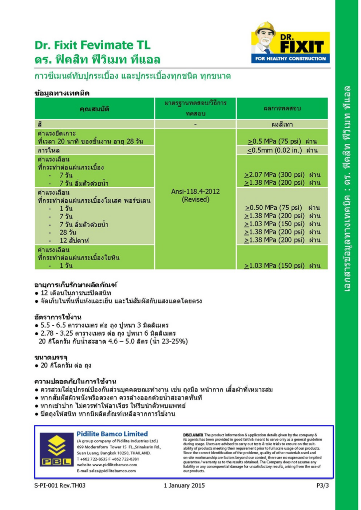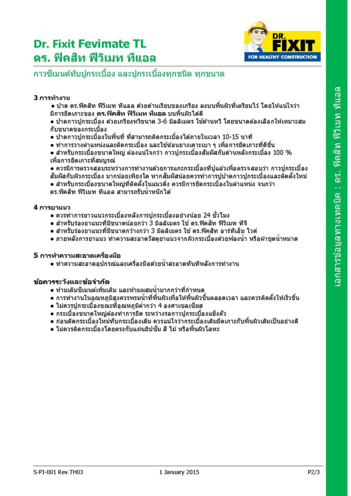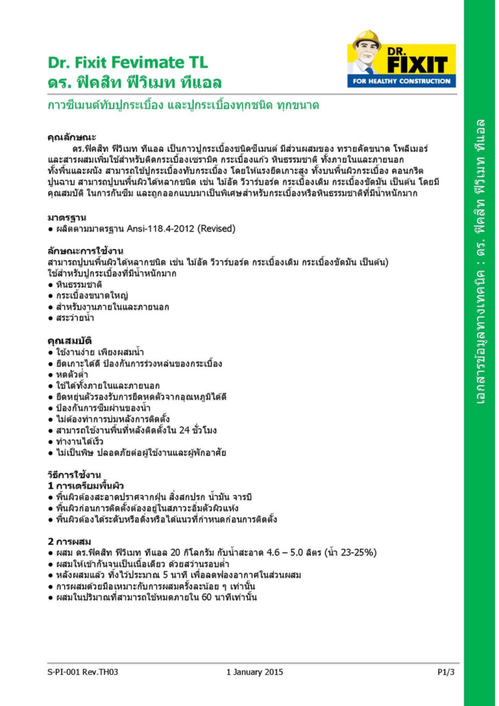 ดร.ฟิคสิท ฟีวิเมท ทีแอล ใช้สำหรับปูกระเบื้องทุกชนิด และหลากหลายพื้นผิว