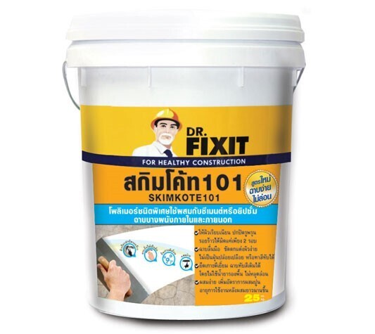 ดร.ฟิคสิท สกิมโคท 101 มีลักษณะเป็นครีมข้น ใช้ผสมกับปอร์ตแลนด์ซีเมนต์หรือยิปซั่ม สำหรับงานฉาบบางบนพื้นผิวคอนกรีต ซีเมนต์หรือปูนฉาบ เพื่อแก้ปัญหารอยแตกลายงา รูพรุนเล็กๆบนผิวคอนกรีต ผิวทรายบนปูนฉาบ หลังจากฉาบจะให้ผิวที่เรียบสวยงาม พร้อมที่จะทำการทาสี หรือปล่อยเปลือยโดยไม่ทำสี ซึ่งจะให้ลักษณะคล้ายผิวคอนกรีตปล่อยเปลือย