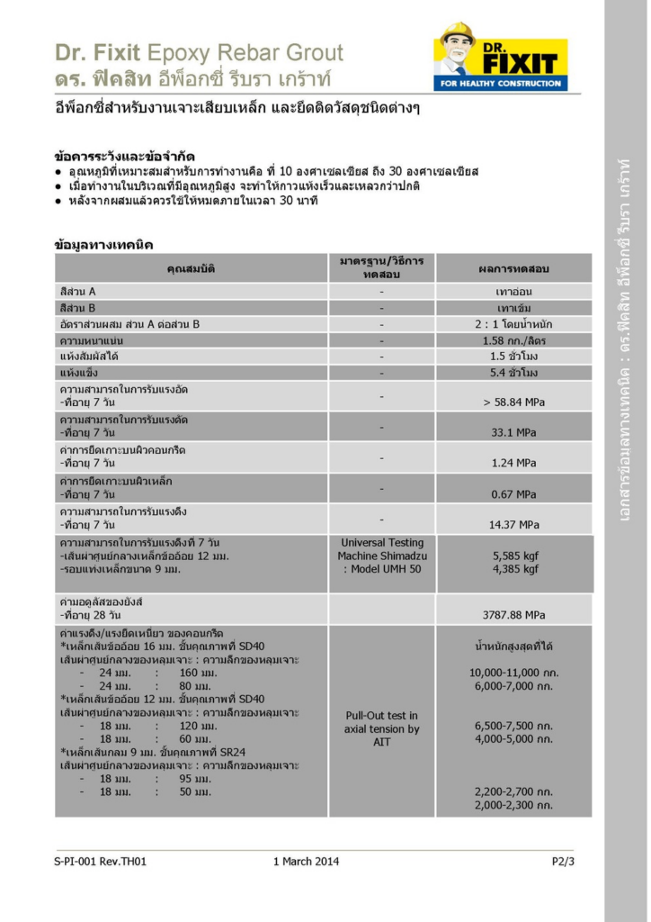 - ใช้ในงานซ่อมแซมผิวคอนกรีต