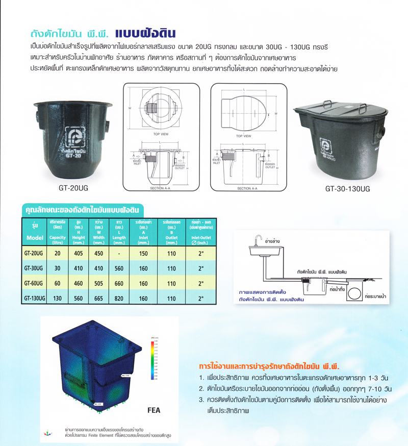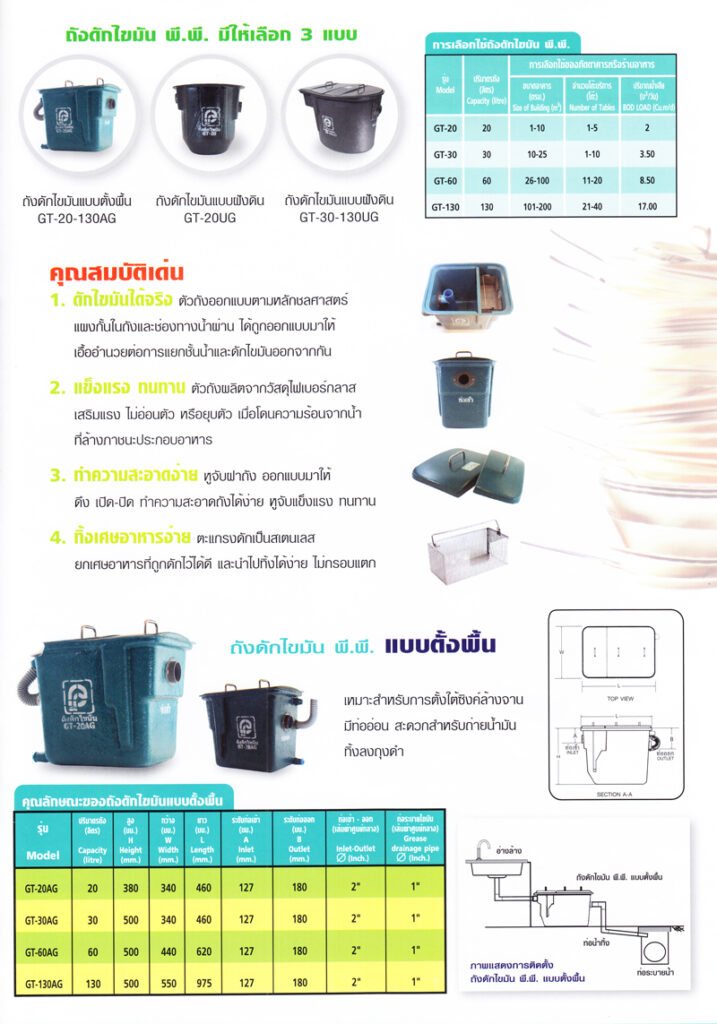 ผลิตภัณฑ์ พี.พี. ถังดักไขมันไฟเบอร์กลาส แบบตั้งพื้น และ แบบฝังดิน