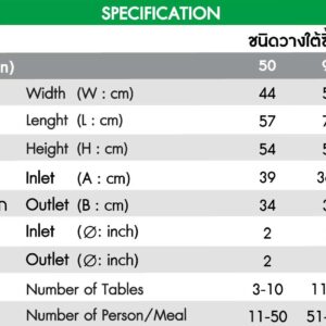 - ส่วนแยกไขมัน ถูกออกแบบให้เหมาะสมกับทิศทางการไหลของน้ำ มีประสิทธิภาพในการแยก และสกัดไขมันให้ลอยอยู่เหนือผิวน้ำ