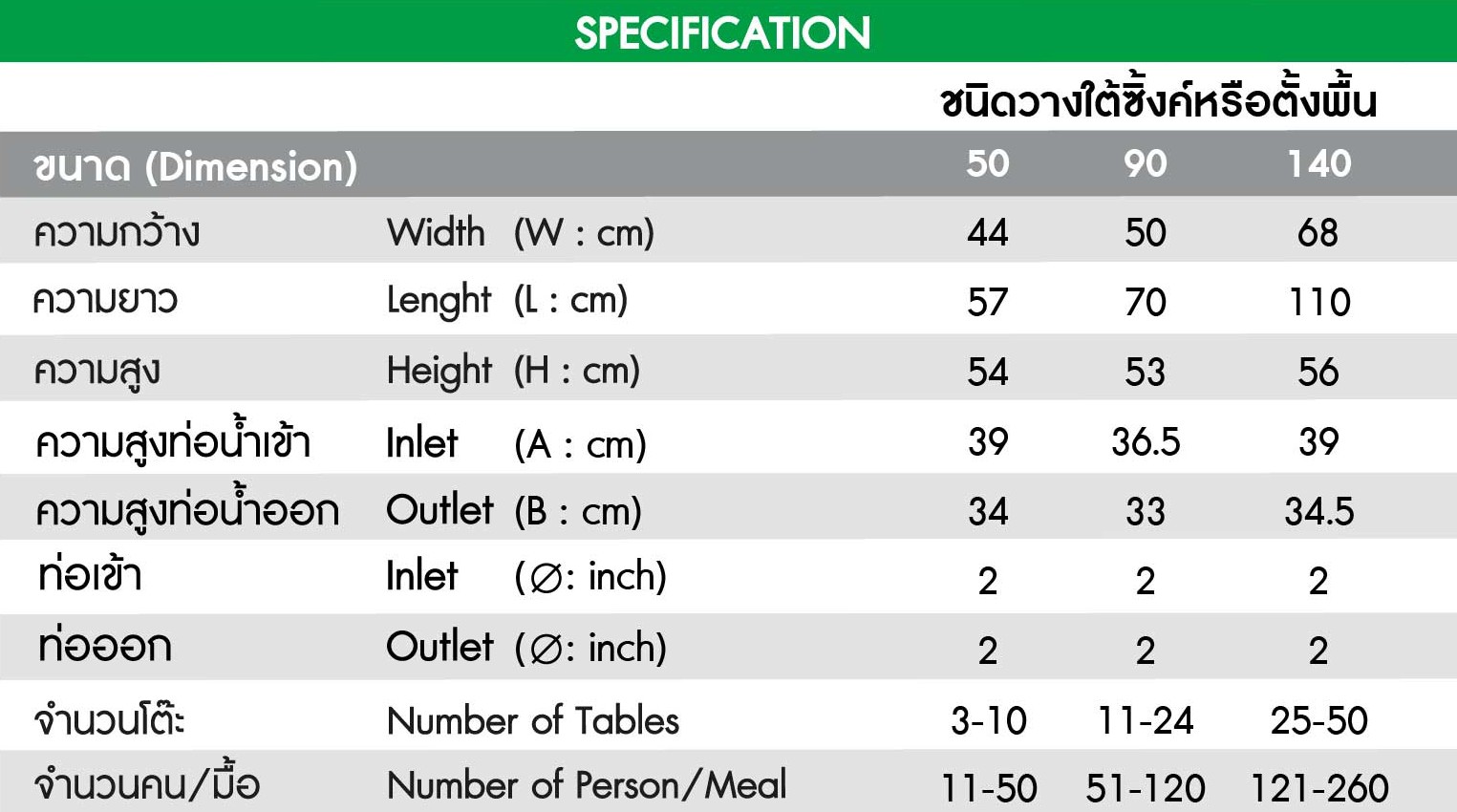ขนาด(ลิตร) : GT-01/BK-50L , GT-01/BK-90L , GT-01/BK-140L