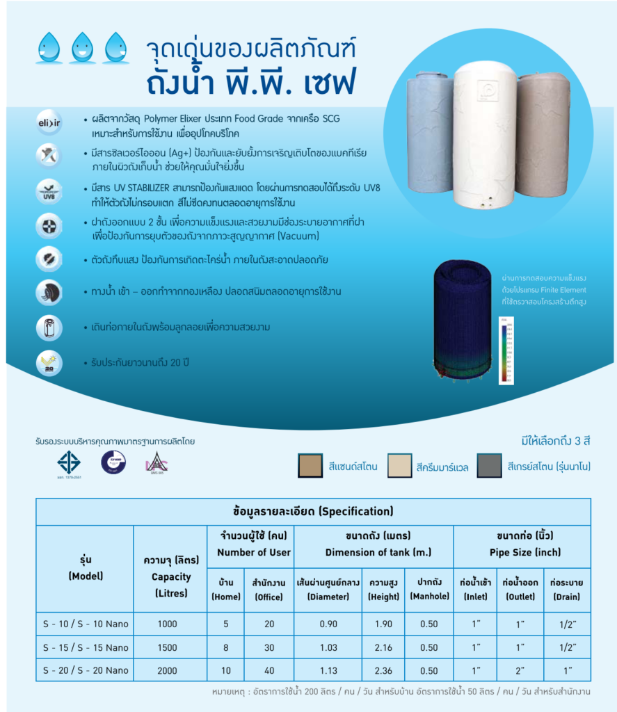ขนาด(ลิตร) : 1000L , 1500L , 2000L