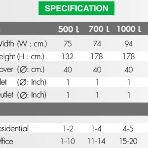 ขนาด(ลิตร) : 500 ,700 , 1000 ,1500 ,2000