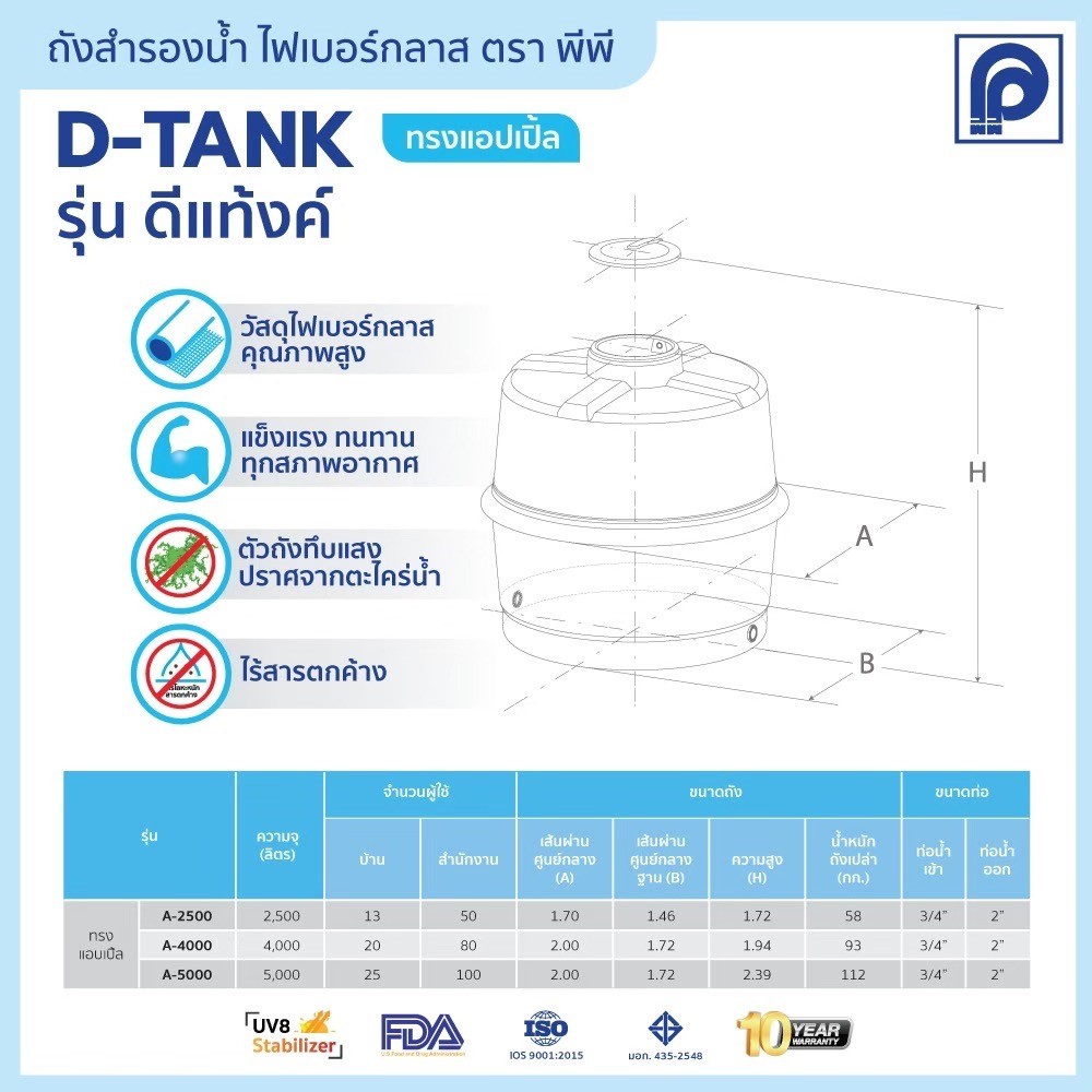 ถังสำรองน้ำรุ่น D-Tank ทรงแอปเปิ้ล
