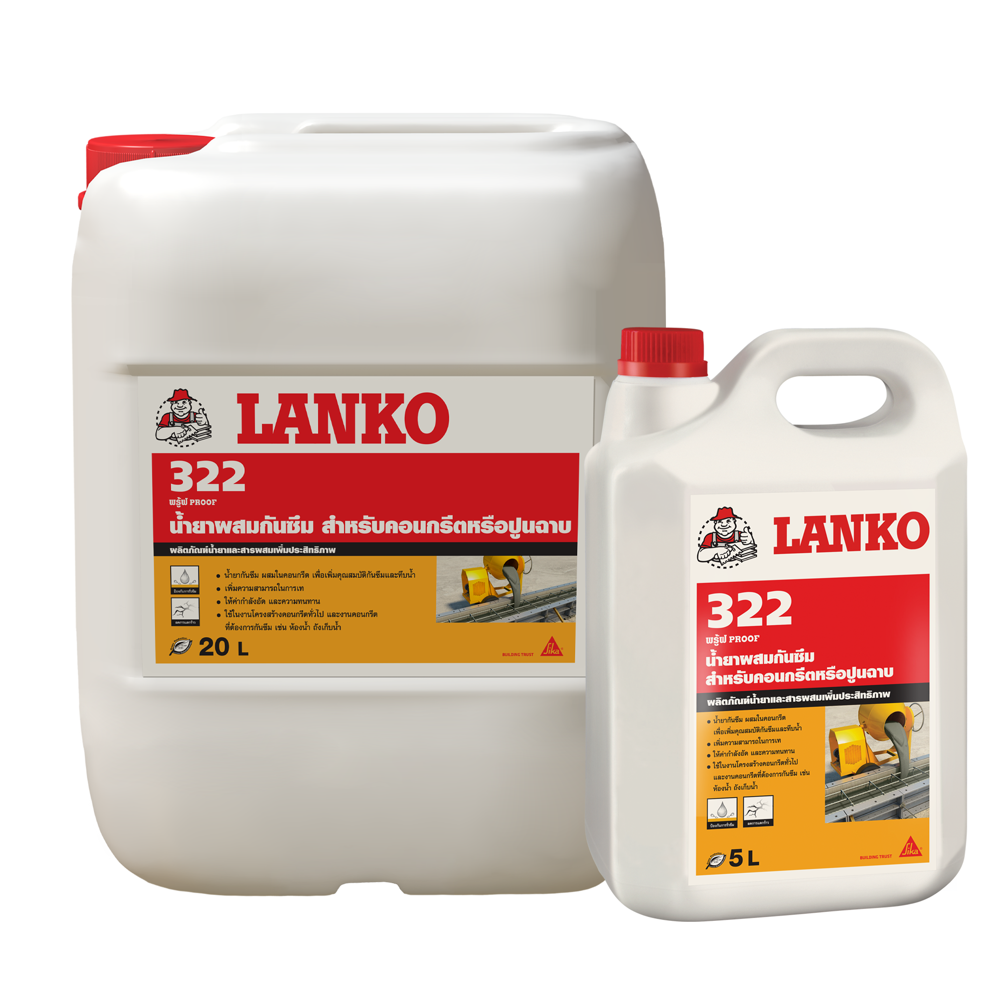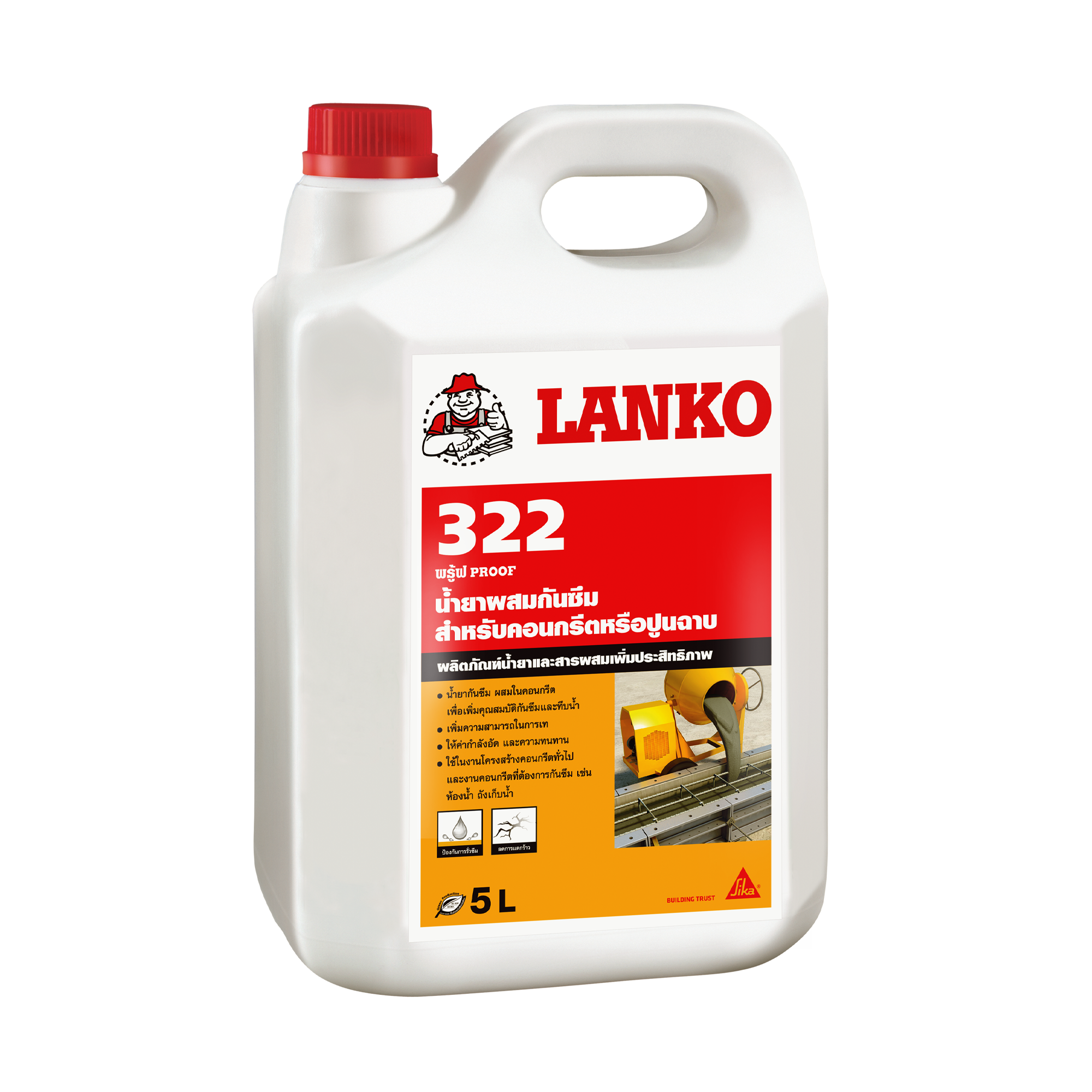 - ห้ามผสม LANKO 322 LANKOPROOF ลงในคอนกรีตหรือปูนฉาบที่ผสมเสร็จแล้ว