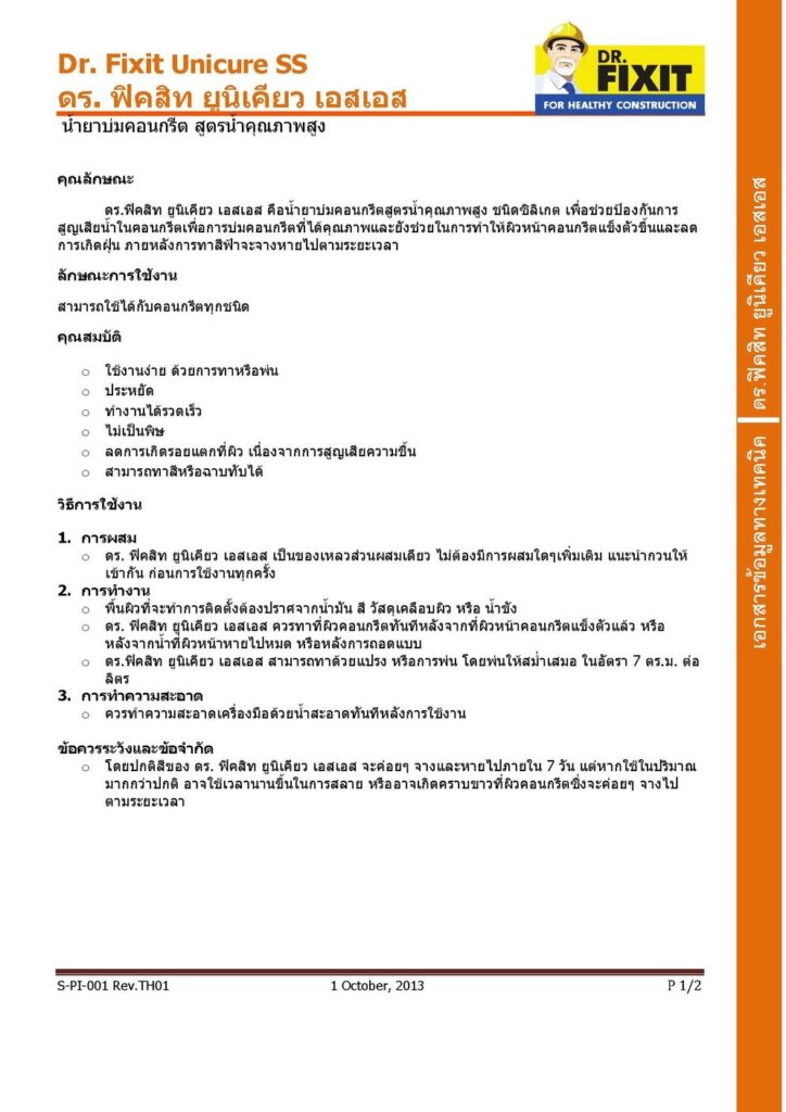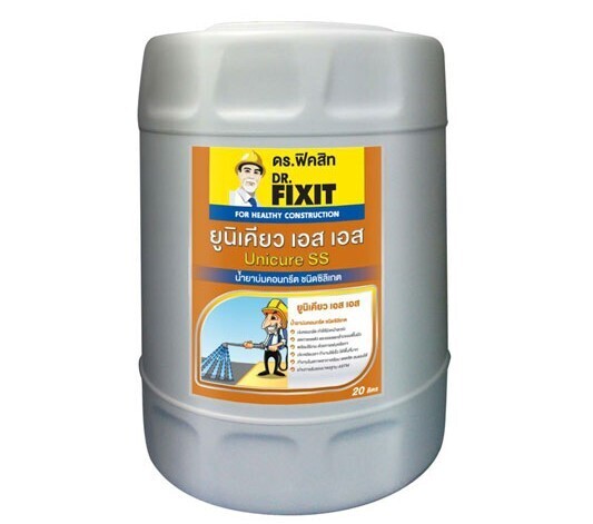 ดร.ฟิคสิท ยูนิเคียว เอสเอส คือน้ำยาบ่มคอนกรีตสูตรน้ำคุณภาพสูง ชนิดซิลิเกต เพื่อช่วยป้องกันการสูญเสียน้ำในคอนกรีต เพื่อการบ่มคอนกรีตที่ได้คุณภาพและยังช่วยในการทำให้ผิวหน้าคอนกรีตแข็งตัวขึ้นและลดการเกิดฝุ่น ภายหลังการทาสีฟ้าจะจางหายไปตามระยะเวลา