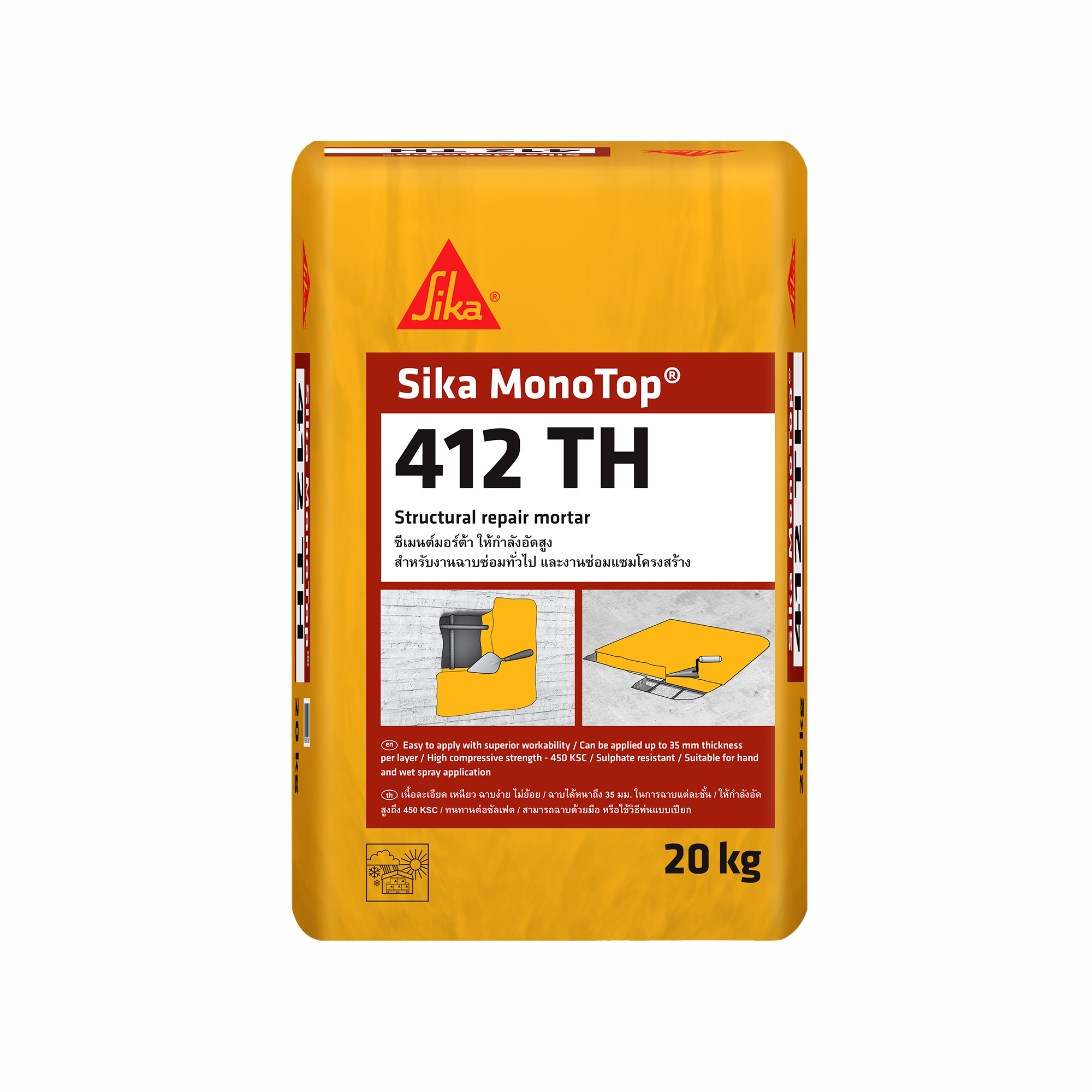 Sika MonoTop-412TH เป็นมอร์ต้าเสริมเส้นใยชนิดส่วนผสมเดียว ใช้สำหรับซ่อมแซมโครงสร้างที่มี การหดตัวต่ำ คุณภาพสอดคล้องกับข้อกำหนด ClassR4 ตามมาตรฐาน EN 1504-3