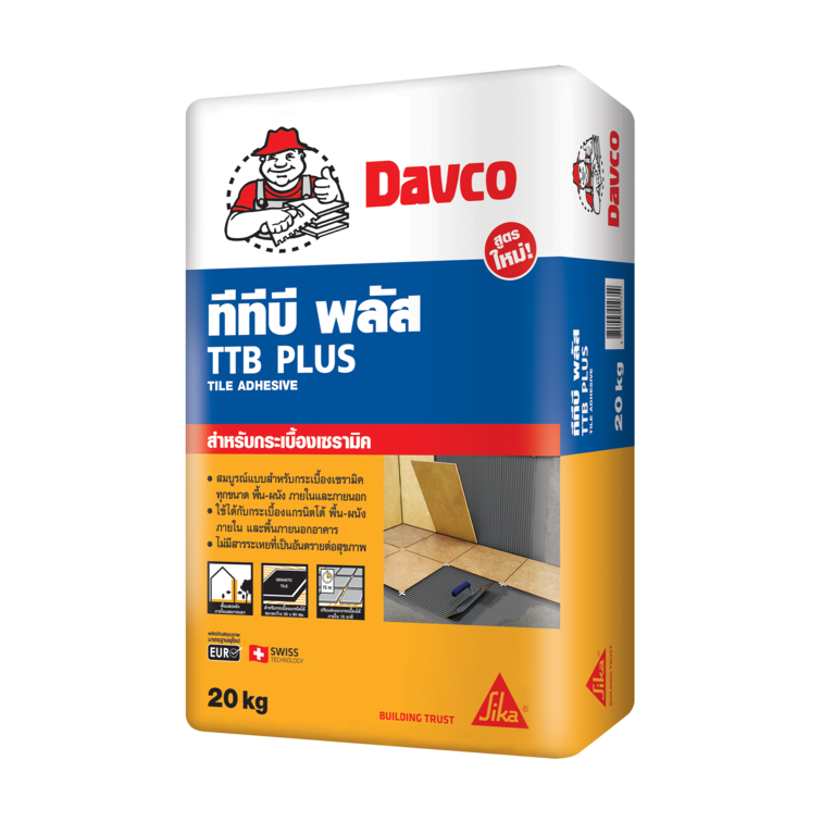 - ปูนกาว DAVCO TTB PLUS 1 ถุง (20 กก.) ต่อน้ำ 4.8 – 5.4 ลิตร