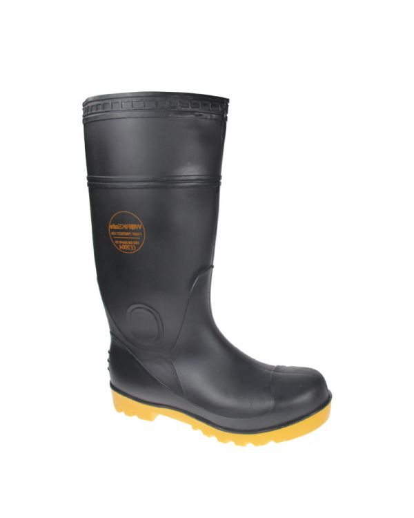 รองเท้าบูทพีวีซี เสริมหัวเหล็กและพื้นเหล็ก ลดการเสียดสีต่อผิวหนัง สวมใส่ได้ยาวนาน โดยไม่ปวดเท้า ช่วยถนอม บริเวณเท้าของผู้สวมใส่